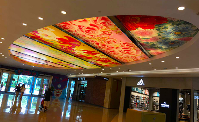 卡布軟膜燈箱不僅限于室內(nèi)壁掛式或是立式的廣告,也不限于正正規(guī)規(guī)的長(zhǎng)方形或正方形,像這種商業(yè)類的天花軟膜燈箱現(xiàn)在也是裝飾裝潢的新形勢(shì),特別創(chuàng)意的廣告可以快速吸引消費(fèi)者眼球.