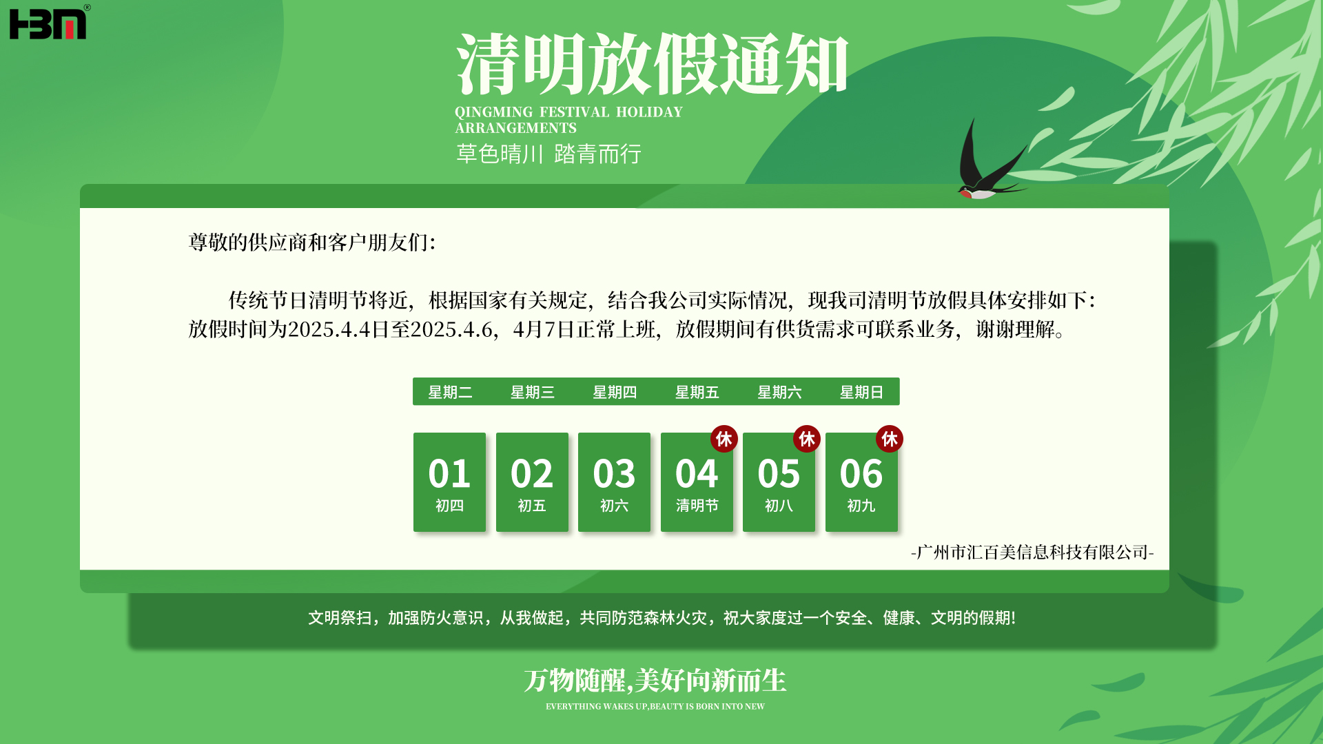 匯百美2025清明節(jié)放假通知
